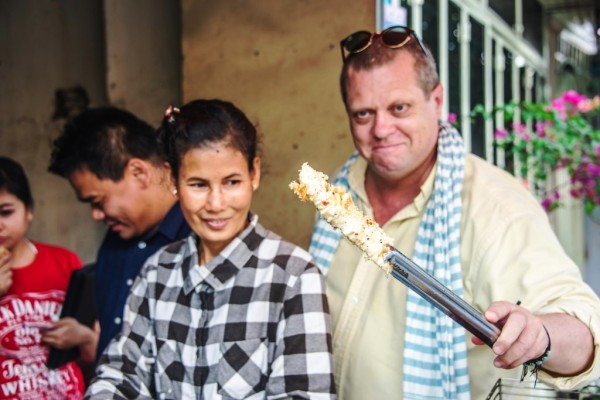 The couple started off very small, says Reth. Selling on the street was hard going, and their children ended up with an orphanage for a time because they could not support them. But people liked their bananas and eventually they saved enough money to rent a small house near the market and to get their children back. For the past six years they have spent all day, every day, deep frying bananas out the front of their small rented home. Their children now go to school and when home the elder children help with the family business.