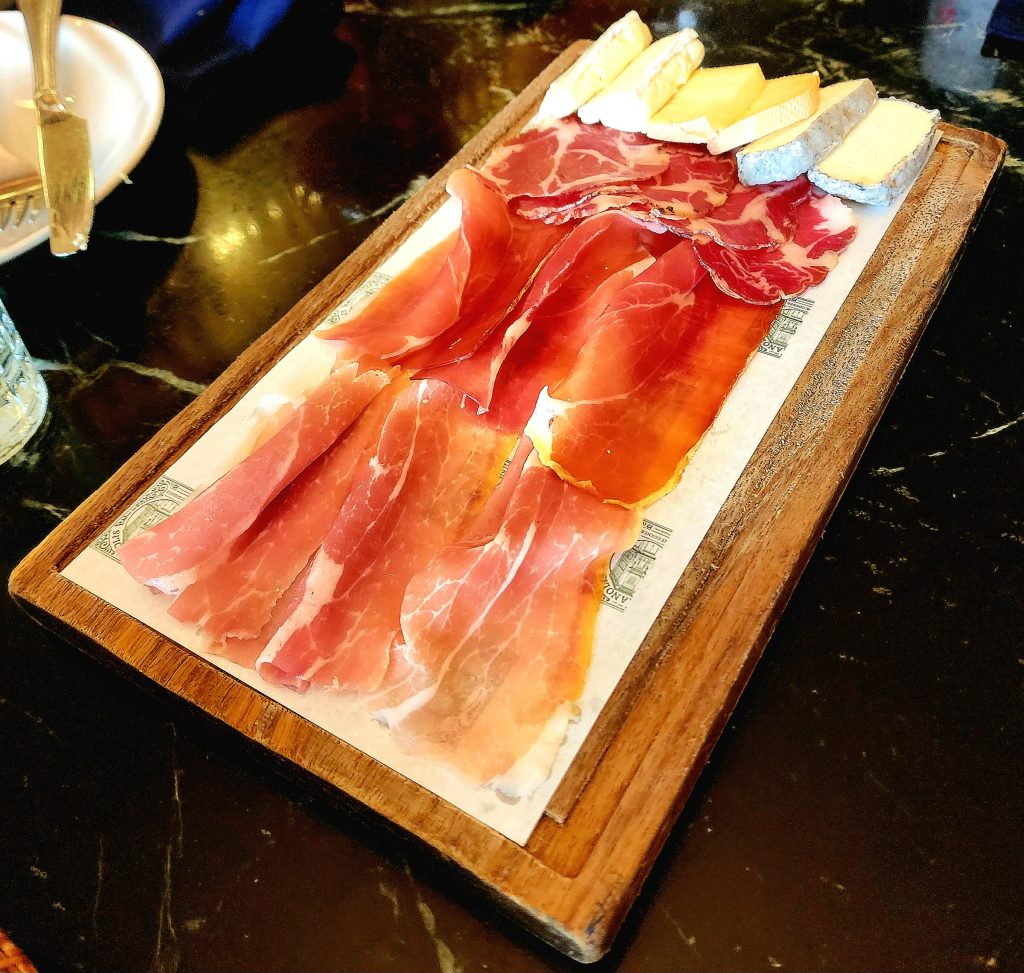 The lunch started with La Planche du Manolis, literally a plank of Coppa, Parma, and Serrano hams, with three exquisite cheeses.