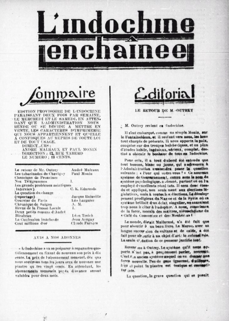 Malraux’s twenty-six months in Indochina, the arrest and trial, had left him a deeply changed man; it radicalised him, turning him into a fervent anti-colonialist. He co-founded the newspaper “Indochina in Chains” (L’Indochine Enchaînée) in Saigon, using it as a voice to expose colonial corruption and injustice. His time in Southeast Asia would also later shape his acclaimed novels, including (the semi-autobiographical) ‘The Royal Way,’ and the Goncourt Prize-winning ‘Man’s Estate.’