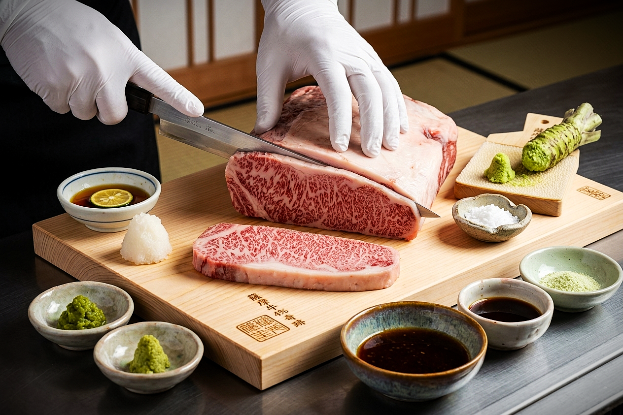 The flavour is buttery, but not sweet in the flat sense of industrial beef. There is a savoury, nutty depth from the oleic-acid-rich fat, and a long umami finish that lingers well past the last swallow. Chefs who cook with this grade tend to serve it in smaller portions than diners expect. Forty or fifty grams is often enough. Beyond that, the richness becomes less a pleasure than a test.