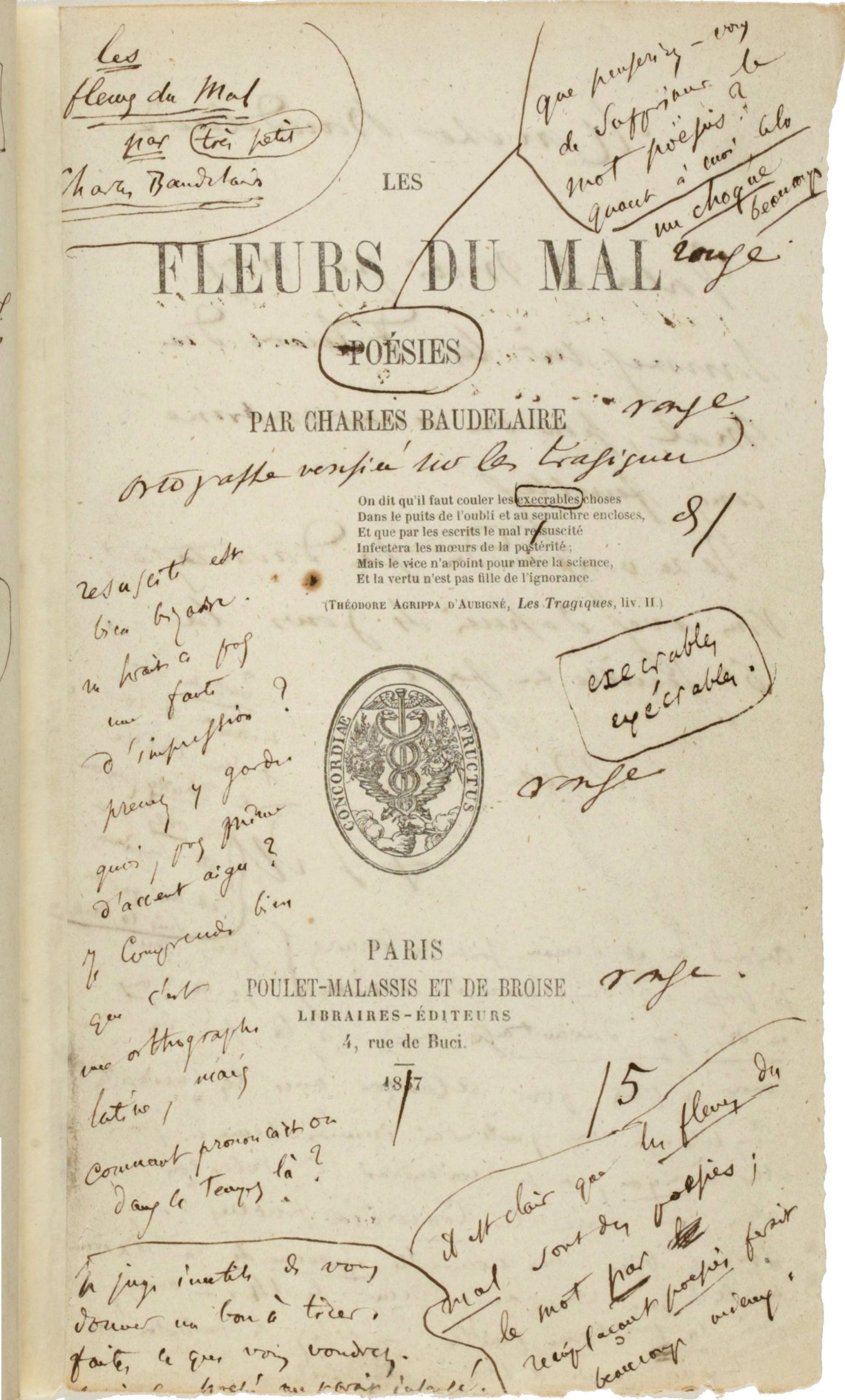 Baudelaire did not appeal. In a letter to his mother written in the aftermath of the conviction, he defended the book with the particular calm of a man who had long expected to be misunderstood: “This book, whose title says everything, is clad, as you will see, in a cold and sinister beauty. It was created with rage and patience. The proof of its positive worth is in all the ill they speak of it.” He added that he did not care a rap for the imbeciles, and that the book would make its way in the memory of the lettered public beside the best poems of Hugo and Byron. He was right. The six suppressed poems were not legally reinstated in France until 31 May 1949 — nearly a century after the conviction. By that point the vindication was almost beside the point. The book had already made its way.